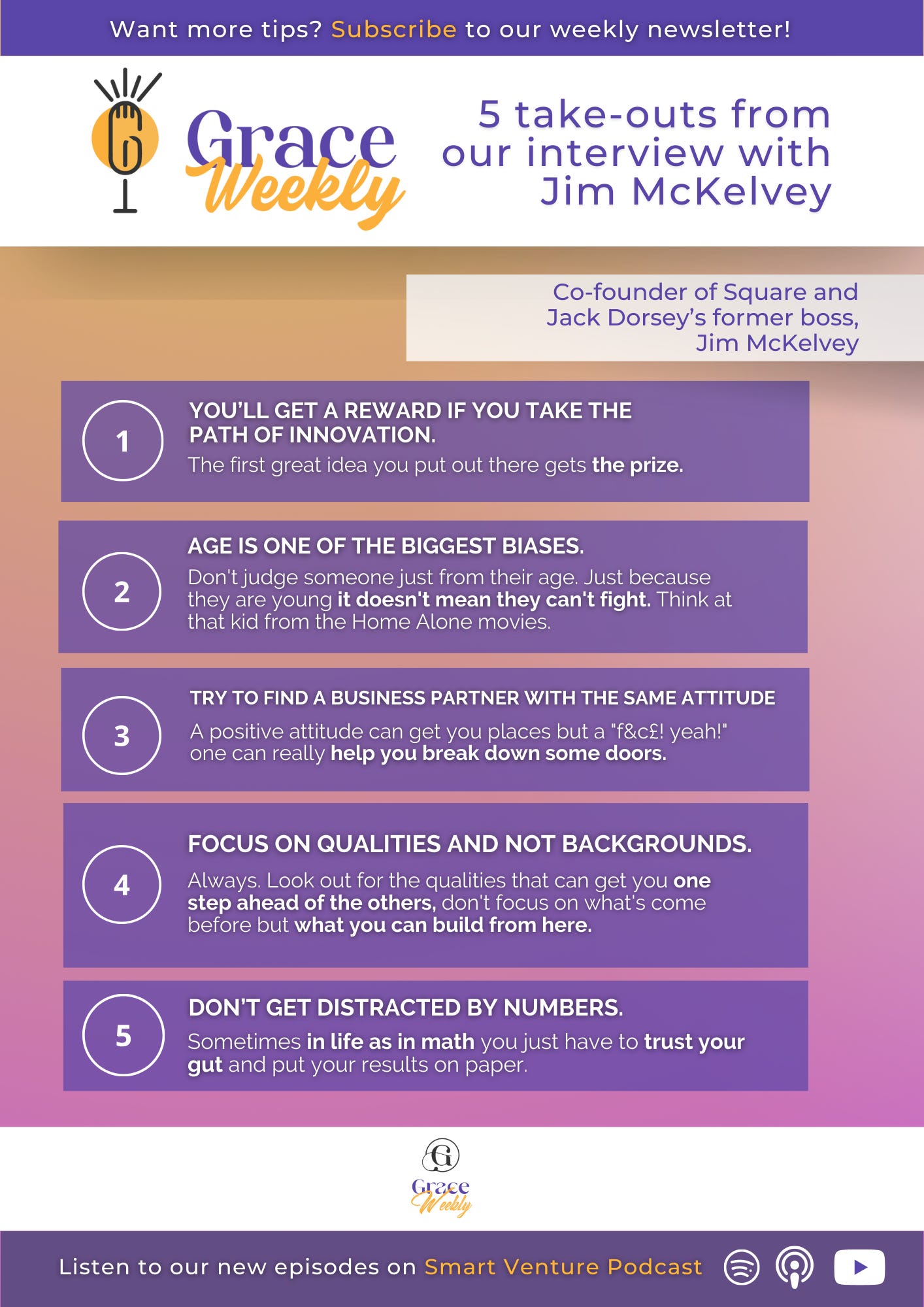 Welcome to our brand new newsletter! This is Grace Weekly, with the best take-outs we have collected for you, taken directly from our “Smart Venture Podcast” and our interviews with the best of the best.